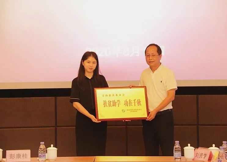 隨著授旗、捐贈扶貧助學款、贈送牌匾儀式的進行,活動推向高潮,趙榕生宣布:青山慈善基金會2020年“寧德教育千人扶貧助學計劃”正式啟動。